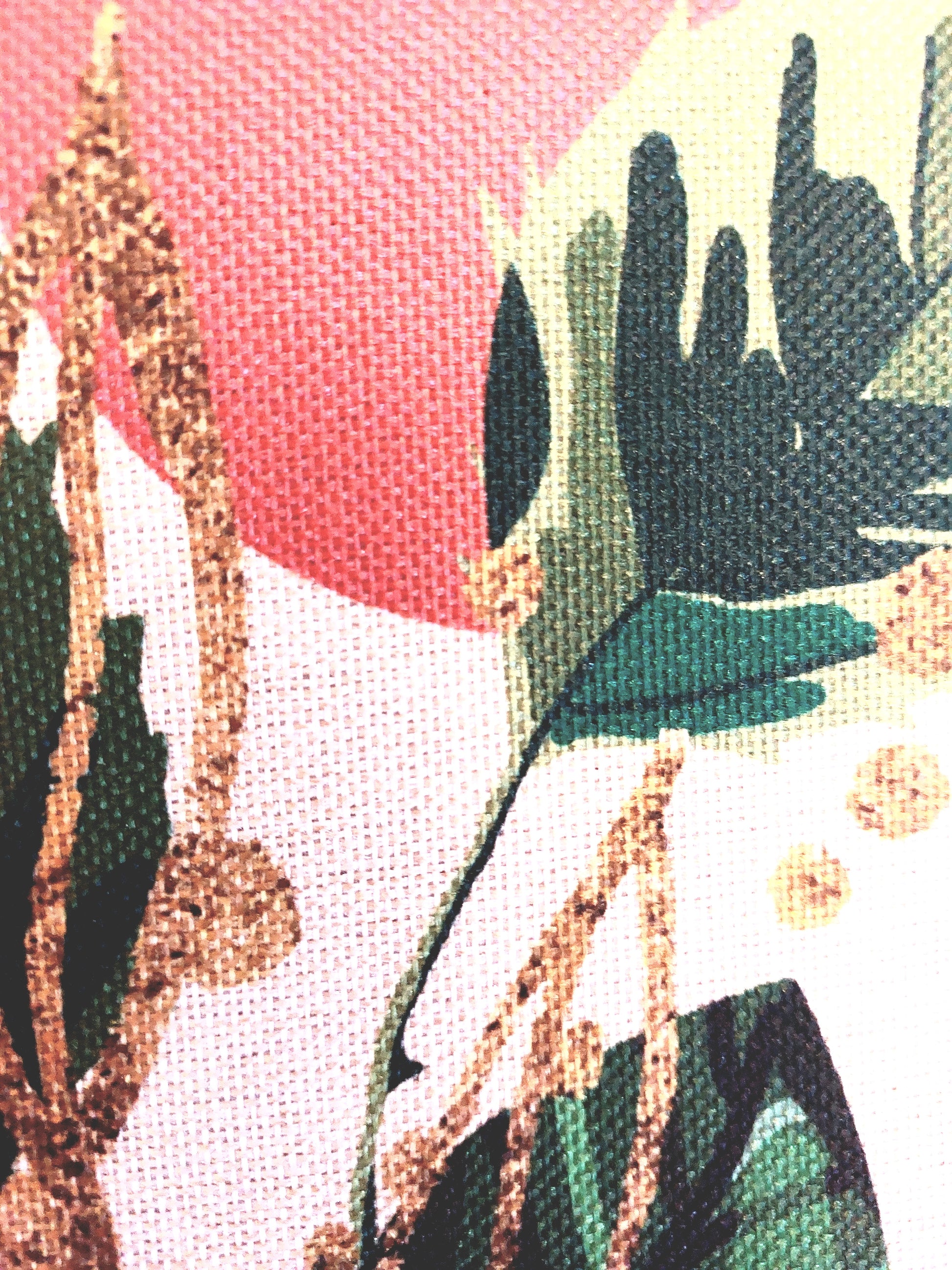 The soft, but durable material is a mix of cotton and linen fabric. Stylish Burlap with light sparkles reflects 2023-2024 years decoration trends and compliments the overall aesthetic. These covers are machine washable and durable with fade resistant print.